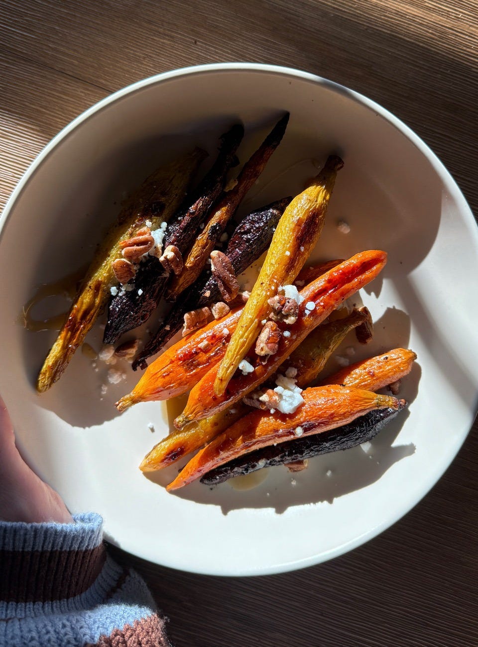 Top with feta, pecans, and a drizzle of honey.